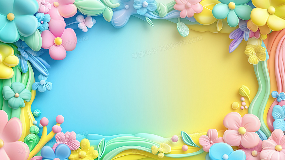 本作品内容为可爱3D立体花朵边框背景, 格式为 jpg, 大小3 MB, 图片尺寸为2912 x 1632, 作品中背景图片无需修改, 源文件无水印,可以直接使用, 欢迎使用熊猫办公。 如认为平台内容涉嫌侵权,可通过邮件:tousu@tukuppt.com提出书面通知,我们将及时处理。
