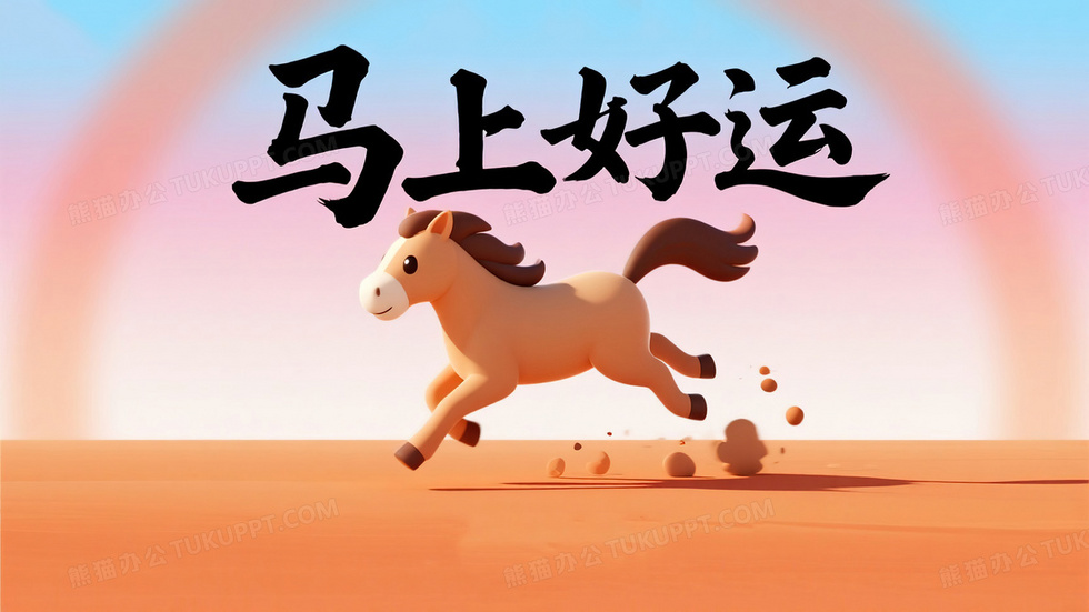 本作品内容为马年新年创意壁纸马上好运卡通马插画, 格式为 jpg, 大小4 MB, 图片尺寸为3328 x 1872, 源文件无水印, 欢迎使用熊猫办公。 如认为平台内容涉嫌侵权,可通过邮件:tousu@tukuppt.com提出书面通知,我们将及时处理。