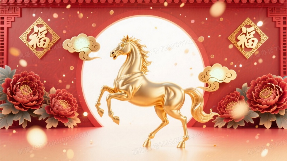 本作品内容为中国风马年春节3D渲染场景, 格式为 jpg, 大小1 MB, 图片尺寸为1664 x 936, 源文件无水印, 欢迎使用熊猫办公。 如认为平台内容涉嫌侵权,可通过邮件:tousu@tukuppt.com提出书面通知,我们将及时处理。