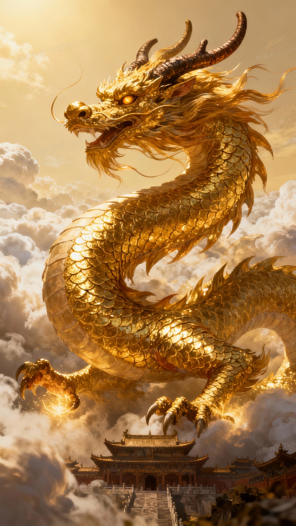 本作品内容为蜿蜒的龙身闪耀着金色鳞片, 格式为 jpg, 大小2 MB, 图片尺寸为1440 x 2560, 源文件无水印, 欢迎使用熊猫办公。 如认为平台内容涉嫌侵权,可通过邮件:tousu@tukuppt.com提出书面通知,我们将及时处理。