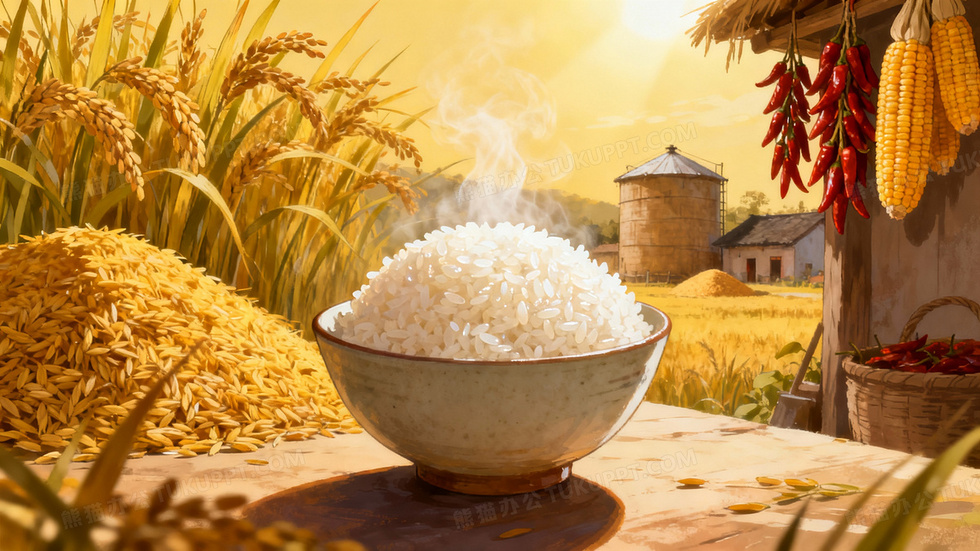 本作品内容为大米饭丰衣足食背景图片, 格式为 jpg, 大小2 MB, 图片尺寸为2560 x 1440, 作品中背景图片无需修改, 源文件无水印,可以直接使用, 欢迎使用熊猫办公。 如认为平台内容涉嫌侵权,可通过邮件:tousu@tukuppt.com提出书面通知,我们将及时处理。