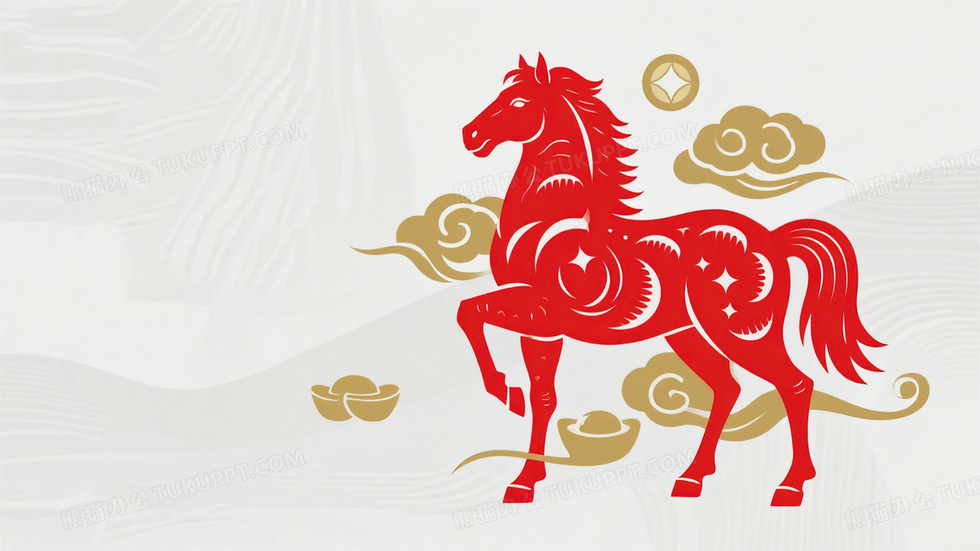 本作品内容为马年春节红色剪纸风马祥云简约背景图, 格式为 jpg, 大小4 MB, 图片尺寸为3328 x 1872, 作品中背景图片无需修改, 源文件无水印,可以直接使用, 欢迎使用熊猫办公。 如认为平台内容涉嫌侵权,可通过邮件:tousu@tukuppt.com提出书面通知,我们将及时处理。