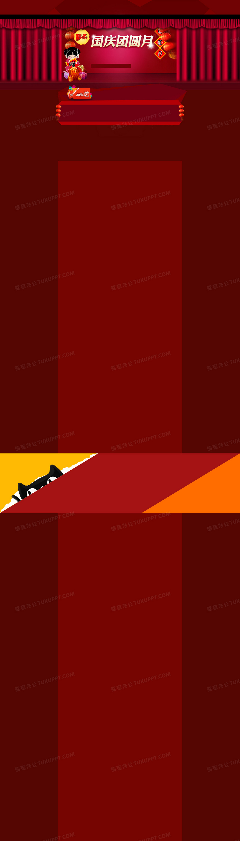 本作品内容为淘宝国庆中秋店铺首页装修, 格式为 psd, 图片尺寸为1920 x 6709, 作品中背景图片无需修改, 源文件无水印,可以直接使用, 欢迎使用熊猫办公。 如认为平台内容涉嫌侵权,可通过邮件:tousu@tukuppt.com提出书面通知,我们将及时处理。
