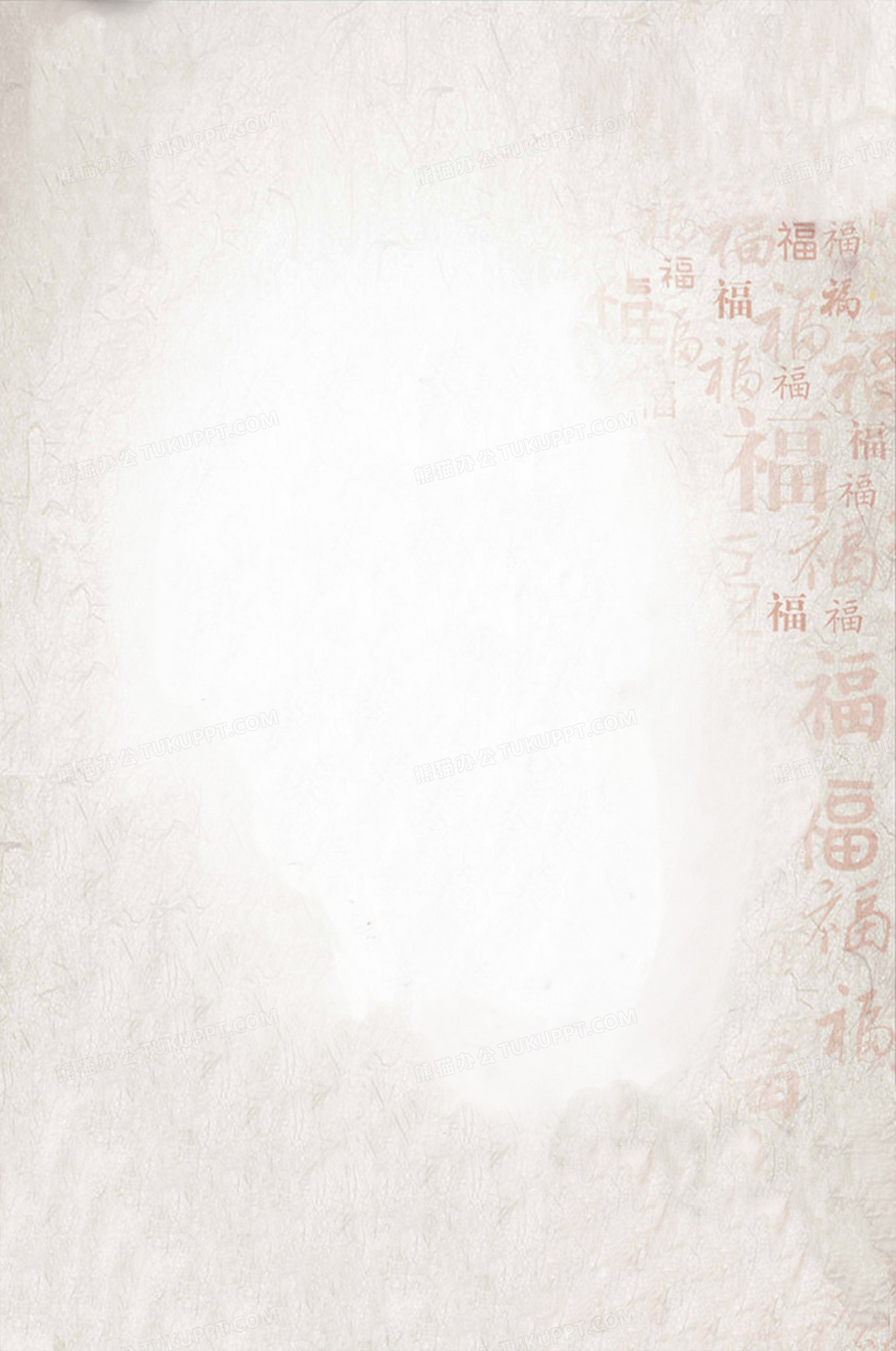 本作品内容为中国风古典福字底纹背景, 格式为 jpg, 图片尺寸为2000 x 3014, 作品中背景图片无需修改, 源文件无水印,可以直接使用, 欢迎使用熊猫办公。 如认为平台内容涉嫌侵权,可通过邮件:tousu@tukuppt.com提出书面通知,我们将及时处理。