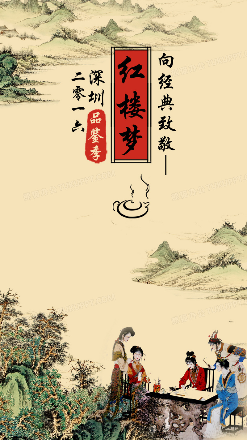本作品内容为水墨画红楼梦H5背景, 格式为 psd, 图片尺寸为1080 x 1920, 作品中背景图片无需修改, 源文件无水印,可以直接使用, 欢迎使用熊猫办公。 如认为平台内容涉嫌侵权,可通过邮件:tousu@tukuppt.com提出书面通知,我们将及时处理。