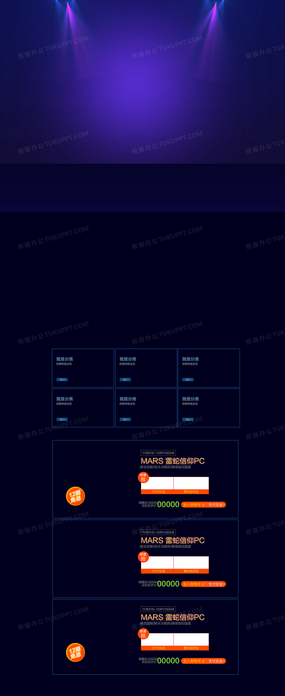 本作品内容为蓝色双十二店铺背景, 格式为 psd, 图片尺寸为1920 x 4680, 作品中背景图片无需修改, 源文件无水印,可以直接使用, 欢迎使用熊猫办公。 如认为平台内容涉嫌侵权,可通过邮件:tousu@tukuppt.com提出书面通知,我们将及时处理。
