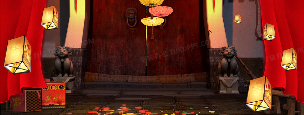 本作品内容为中国风古宅囤年货广告海报背景素材, 格式为 psd, 图片尺寸为5333 x 2017, 作品中背景图片无需修改, 源文件无水印,可以直接使用, 欢迎使用熊猫办公。 如认为平台内容涉嫌侵权,可通过邮件:tousu@tukuppt.com提出书面通知,我们将及时处理。