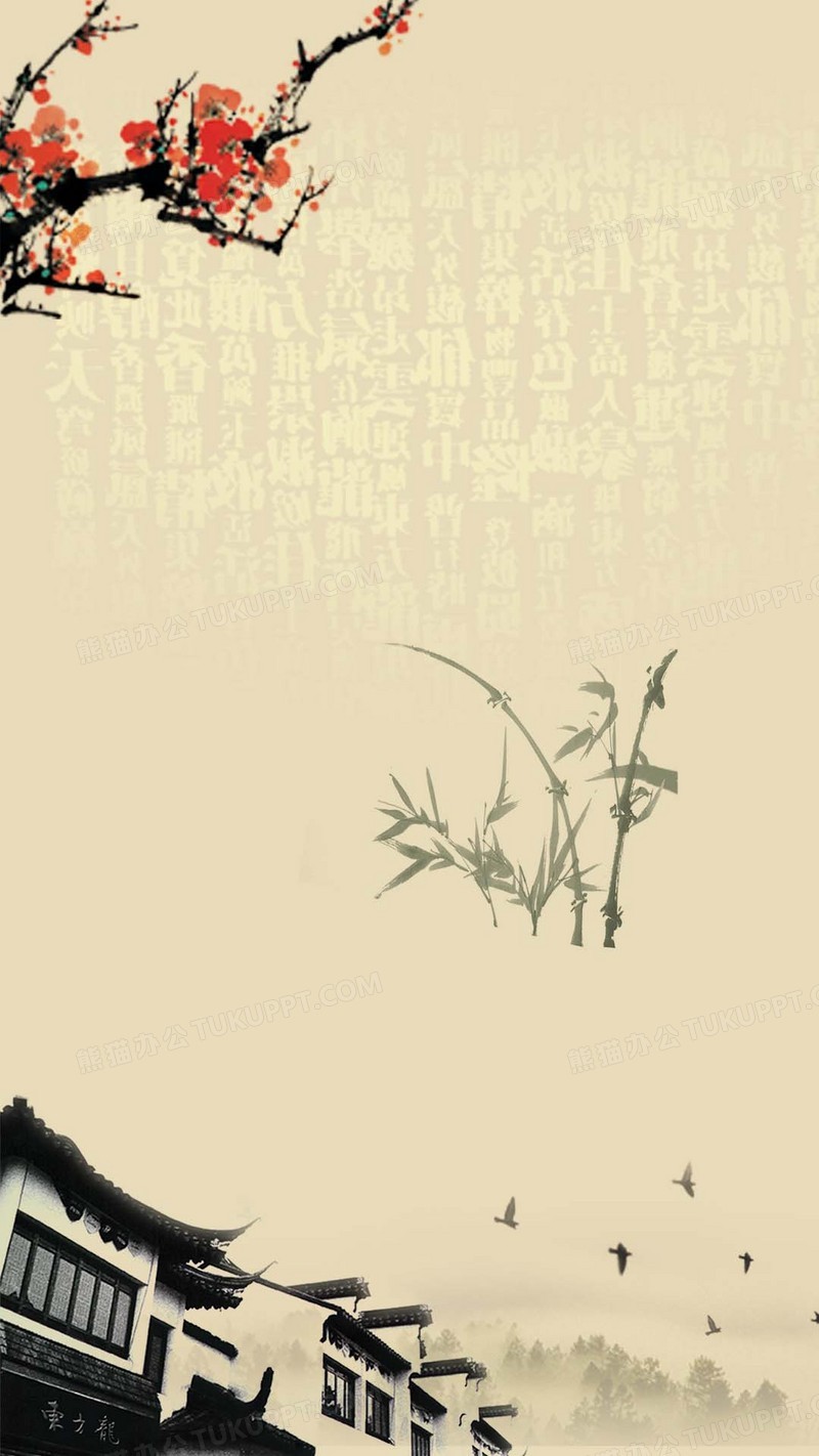 本作品内容为水墨风江南民居梅花H5背景, 格式为 psd, 图片尺寸为1080 x 1920, 作品中背景图片无需修改, 源文件无水印,可以直接使用, 欢迎使用熊猫办公。 如认为平台内容涉嫌侵权,可通过邮件:tousu@tukuppt.com提出书面通知,我们将及时处理。