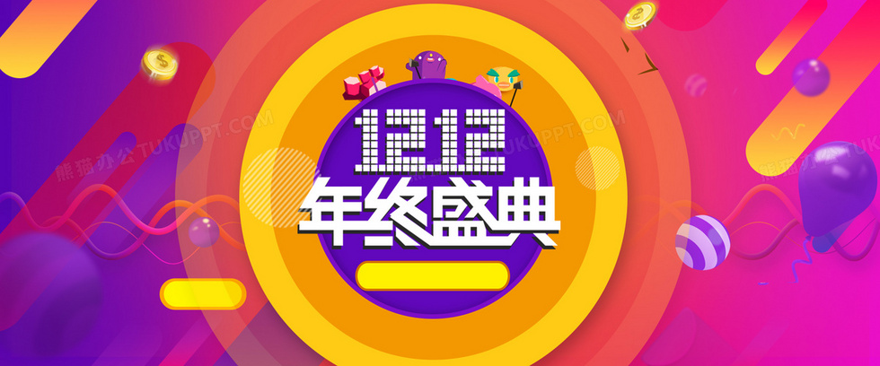 本作品内容为淘宝天猫双12年终盛典海报, 格式为 psd, 图片尺寸为1920 x 800, 作品中背景图片无需修改, 源文件无水印,可以直接使用, 欢迎使用熊猫办公。 如认为平台内容涉嫌侵权,可通过邮件:tousu@tukuppt.com提出书面通知,我们将及时处理。