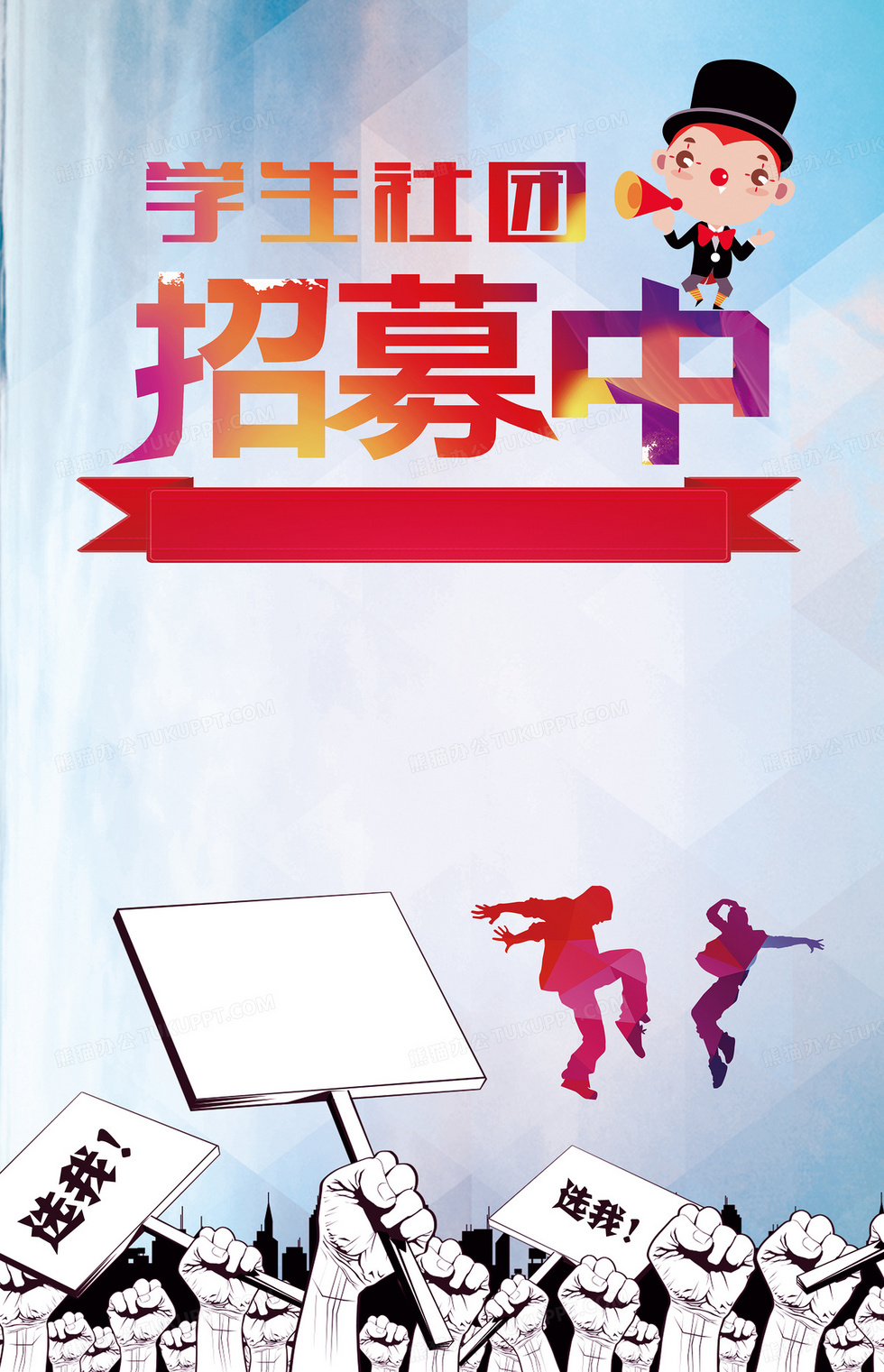 本作品内容为社团招募海报, 格式为 psd, 图片尺寸为2740 x 4252, 作品中背景图片无需修改, 源文件无水印,可以直接使用, 欢迎使用熊猫办公。 如认为平台内容涉嫌侵权,可通过邮件:tousu@tukuppt.com提出书面通知,我们将及时处理。