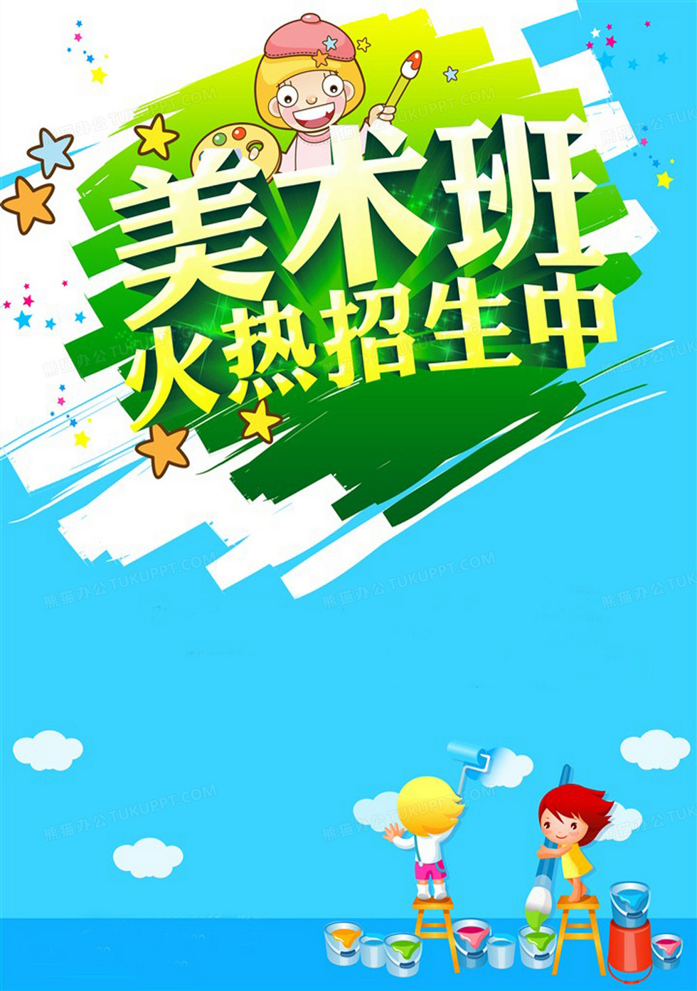 本作品内容为美术班火热招生海报, 格式为 psd, 图片尺寸为2000 x 2844, 作品中背景图片无需修改, 源文件无水印,可以直接使用, 欢迎使用熊猫办公。 如认为平台内容涉嫌侵权,可通过邮件:tousu@tukuppt.com提出书面通知,我们将及时处理。