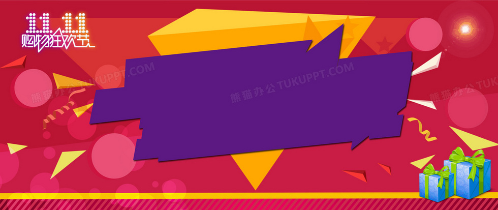 本作品内容为双十一购物狂欢节, 格式为 psd, 图片尺寸为1920 x 810, 作品中背景图片无需修改, 源文件无水印,可以直接使用, 欢迎使用熊猫办公。 如认为平台内容涉嫌侵权,可通过邮件:tousu@tukuppt.com提出书面通知,我们将及时处理。