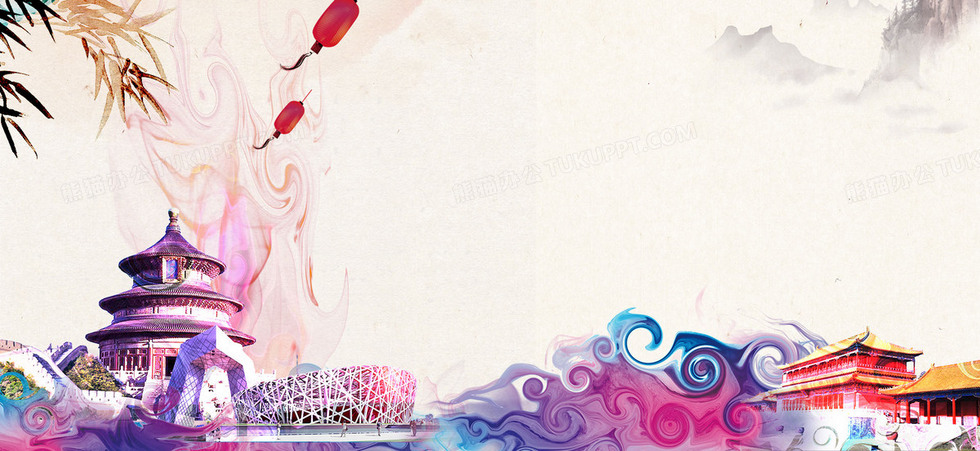 本作品内容为中国风北京建筑海报背景, 格式为 psd, 图片尺寸为1920 x 883, 作品中背景图片无需修改, 源文件无水印,可以直接使用, 欢迎使用熊猫办公。 如认为平台内容涉嫌侵权,可通过邮件:tousu@tukuppt.com提出书面通知,我们将及时处理。