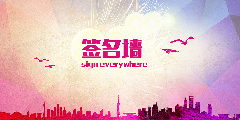 本作品内容为紫色梦幻扁平城市风格签名墙, 格式为 psd, 图片尺寸为5906 x 2953, 作品中背景图片无需修改, 源文件无水印,可以直接使用, 欢迎使用熊猫办公。 如认为平台内容涉嫌侵权,可通过邮件:tousu@tukuppt.com提出书面通知,我们将及时处理。