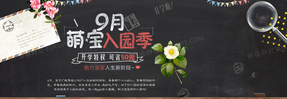 本作品内容为萌宝开学季背景, 格式为 psd, 图片尺寸为1920 x 666, 作品中背景图片无需修改, 源文件无水印,可以直接使用, 欢迎使用熊猫办公。 如认为平台内容涉嫌侵权,可通过邮件:tousu@tukuppt.com提出书面通知,我们将及时处理。