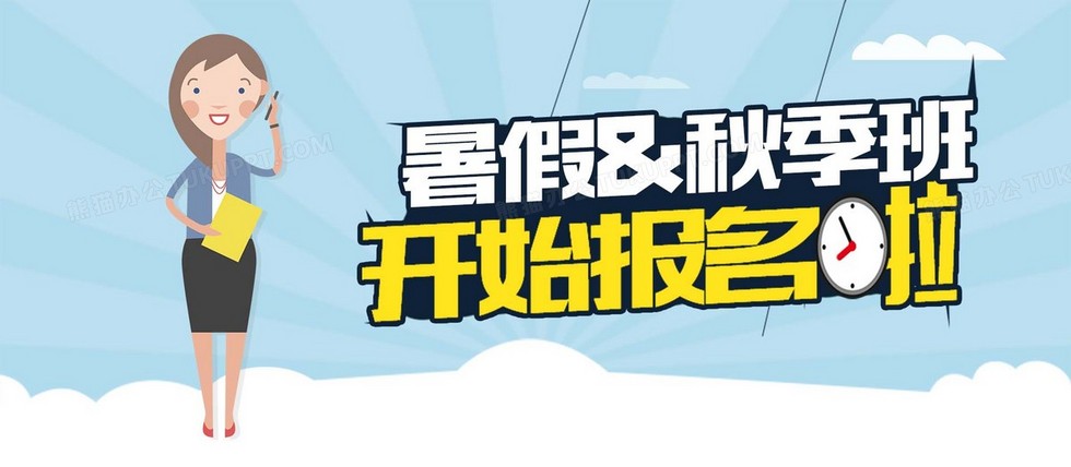 本作品内容为暑假报名banner, 格式为 psd, 图片尺寸为1920 x 838, 作品中背景图片无需修改, 源文件无水印,可以直接使用, 欢迎使用熊猫办公。 如认为平台内容涉嫌侵权,可通过邮件:tousu@tukuppt.com提出书面通知,我们将及时处理。