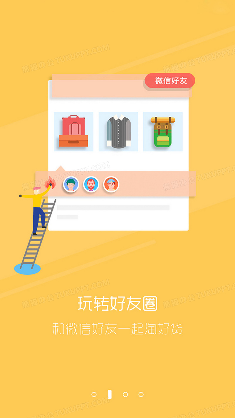本作品内容为商城购物类APP黄色引导页设计, 格式为 jpg, 图片尺寸为1080 x 1920, 作品中背景图片无需修改, 源文件无水印,可以直接使用, 欢迎使用熊猫办公。 如认为平台内容涉嫌侵权,可通过邮件:tousu@tukuppt.com提出书面通知,我们将及时处理。