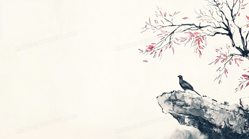本作品内容为中国风水墨植物栖息飞鸟背景, 格式为 jpg, 大小2 MB, 图片尺寸为2912 x 1632, 作品中背景图片无需修改, 源文件无水印,可以直接使用, 欢迎使用熊猫办公。 如认为平台内容涉嫌侵权,可通过邮件:tousu@tukuppt.com提出书面通知,我们将及时处理。