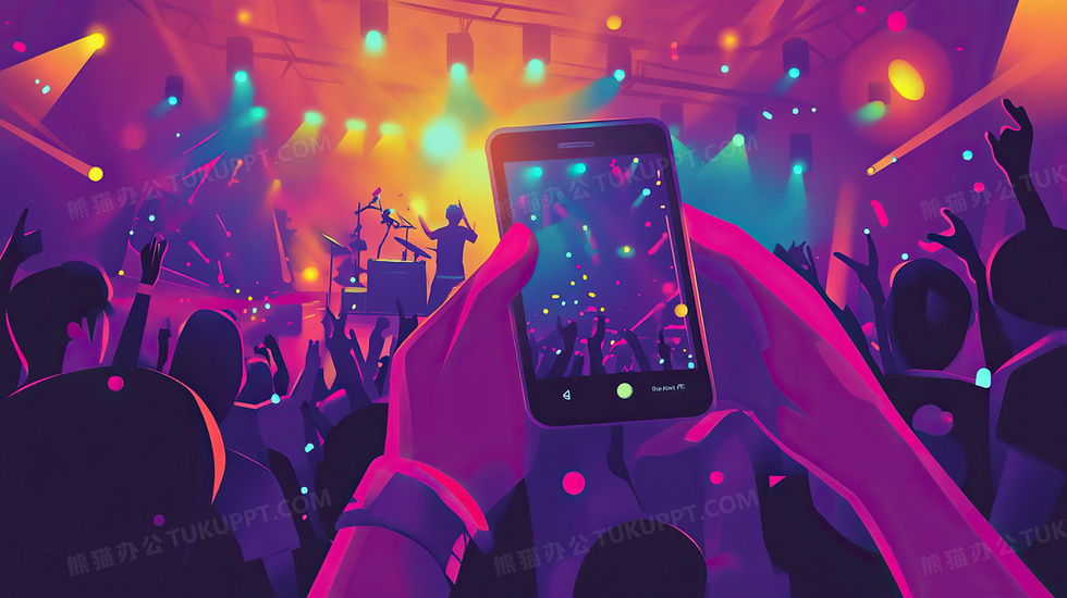本作品内容为在演唱会上拍照插画, 格式为 jpg, 大小3 MB, 图片尺寸为2912 x 1632, 源文件无水印, 欢迎使用熊猫办公。 如认为平台内容涉嫌侵权,可通过邮件:tousu@tukuppt.com提出书面通知,我们将及时处理。