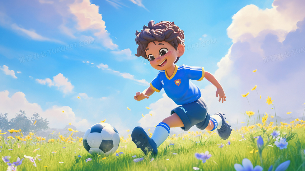 本作品内容为男孩草地踢足球运动体育插画, 格式为 jpg, 大小3 MB, 图片尺寸为2912 x 1632, 源文件无水印, 欢迎使用熊猫办公。 如认为平台内容涉嫌侵权,可通过邮件:tousu@tukuppt.com提出书面通知,我们将及时处理。