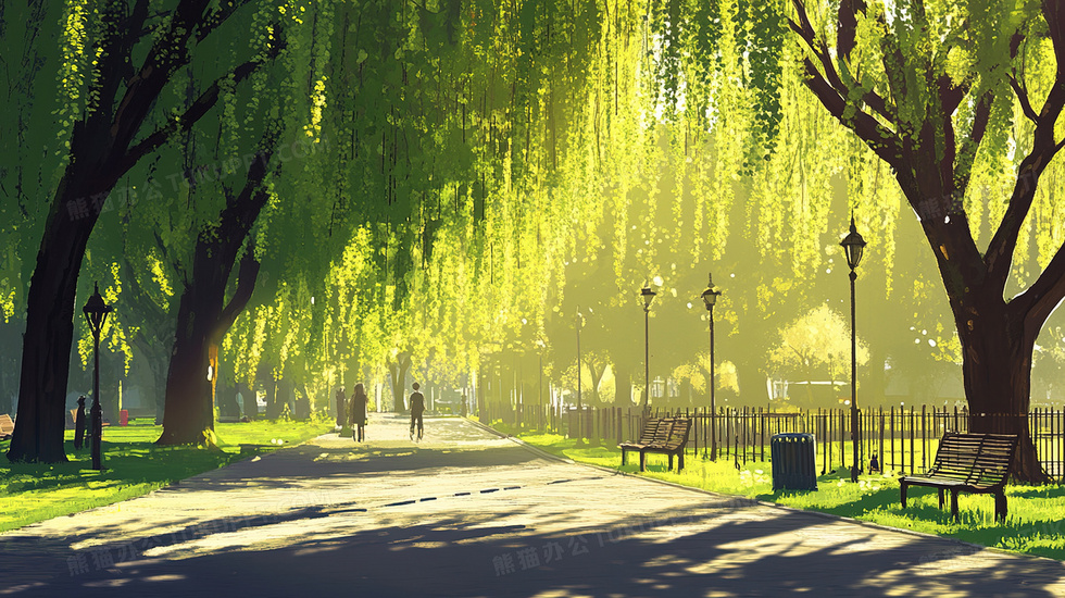 本作品内容为春季春天户外公园盛开的柳树插画, 格式为 jpg, 大小4 MB, 图片尺寸为2912 x 1632, 源文件无水印, 欢迎使用熊猫办公。 如认为平台内容涉嫌侵权,可通过邮件:tousu@tukuppt.com提出书面通知,我们将及时处理。