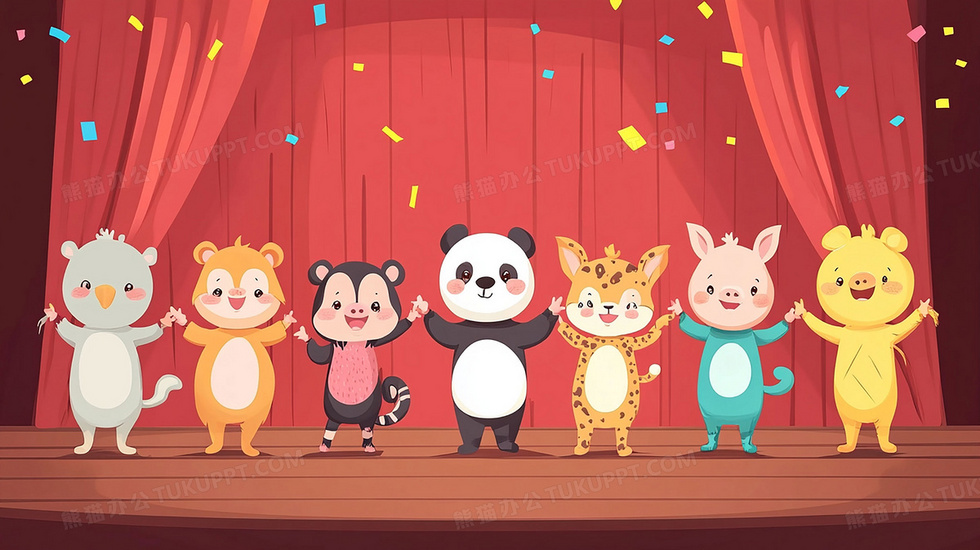 本作品内容为舞台儿童节目插画, 格式为 jpg, 大小1 MB, 图片尺寸为2912 x 1632, 源文件无水印, 欢迎使用熊猫办公。 如认为平台内容涉嫌侵权,可通过邮件:tousu@tukuppt.com提出书面通知,我们将及时处理。