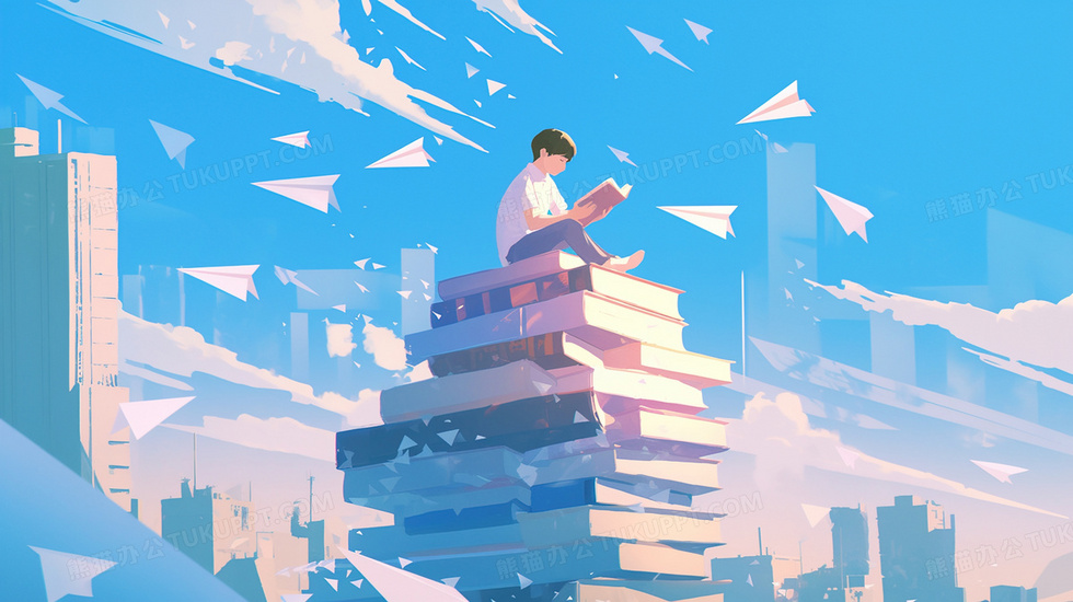 本作品内容为梦幻男孩坐在书堆上看书阅读纸飞机插画, 格式为 jpg, 大小2 MB, 图片尺寸为2912 x 1632, 源文件无水印, 欢迎使用熊猫办公。 如认为平台内容涉嫌侵权,可通过邮件:tousu@tukuppt.com提出书面通知,我们将及时处理。