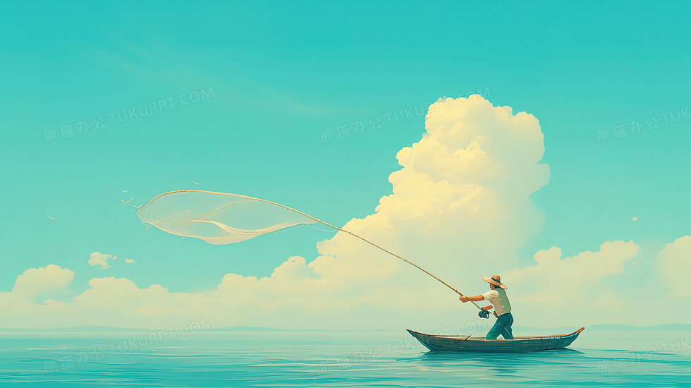 本作品内容为渔网捕鱼手绘背景, 格式为 jpg, 大小3 MB, 图片尺寸为2912 x 1632, 作品中背景图片无需修改, 源文件无水印,可以直接使用, 欢迎使用熊猫办公。 如认为平台内容涉嫌侵权,可通过邮件:tousu@tukuppt.com提出书面通知,我们将及时处理。