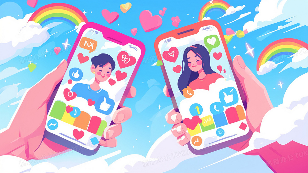 本作品内容为情侣手机软件在线视频卡通插画, 格式为 jpg, 大小2 MB, 图片尺寸为2912 x 1632, 源文件无水印, 欢迎使用熊猫办公。 如认为平台内容涉嫌侵权,可通过邮件:tousu@tukuppt.com提出书面通知,我们将及时处理。