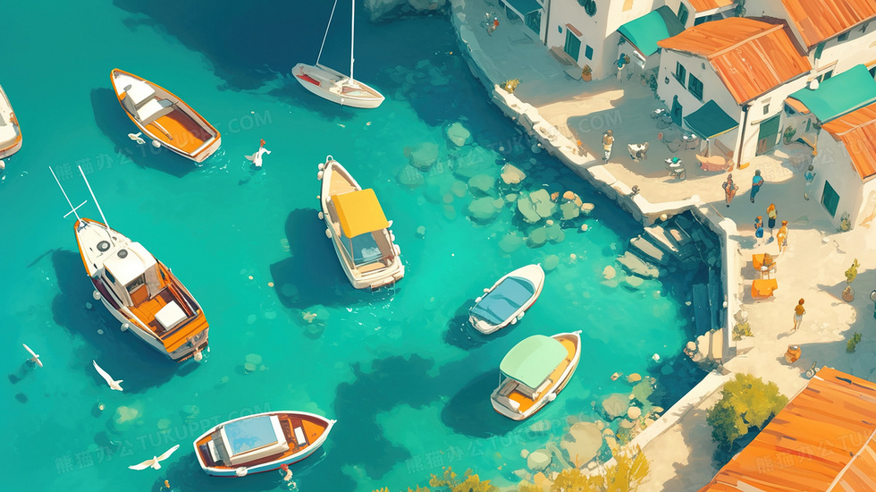 本作品内容为俯视码头捕鱼船只靠岸卡通插画, 格式为 jpg, 大小3 MB, 图片尺寸为2912 x 1632, 源文件无水印, 欢迎使用熊猫办公。 如认为平台内容涉嫌侵权,可通过邮件:tousu@tukuppt.com提出书面通知,我们将及时处理。
