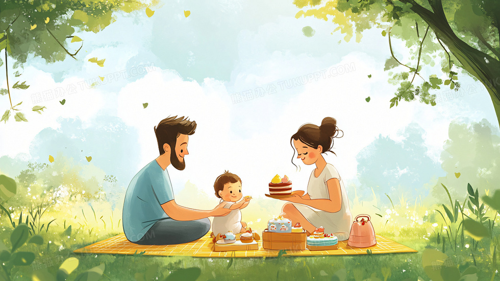 本作品内容为外出野餐温馨的一家人插画, 格式为 jpg, 大小6 MB, 图片尺寸为2912 x 1632, 源文件无水印, 欢迎使用熊猫办公。 如认为平台内容涉嫌侵权,可通过邮件:tousu@tukuppt.com提出书面通知,我们将及时处理。