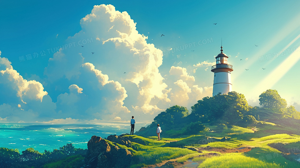 本作品内容为蓝天海面海鸥灯塔风景插画, 格式为 jpg, 大小3 MB, 图片尺寸为2912 x 1632, 源文件无水印, 欢迎使用熊猫办公。 如认为平台内容涉嫌侵权,可通过邮件:tousu@tukuppt.com提出书面通知,我们将及时处理。