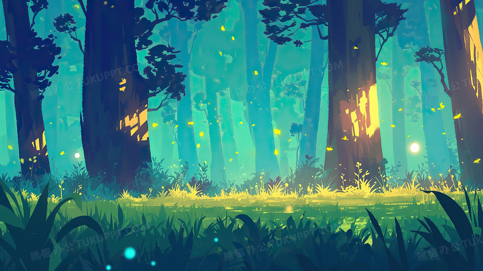 本作品内容为卡通风森林夏夜插画, 格式为 jpg, 大小4 MB, 图片尺寸为2912 x 1632, 源文件无水印, 欢迎使用熊猫办公。 如认为平台内容涉嫌侵权,可通过邮件:tousu@tukuppt.com提出书面通知,我们将及时处理。