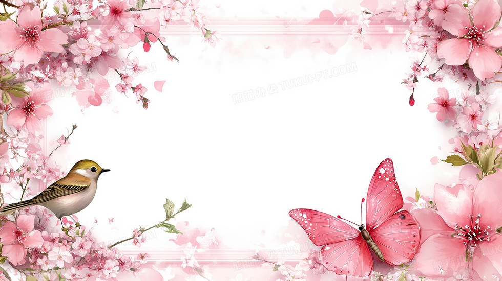 本作品内容为粉色水彩风春天花卉边框背景, 格式为 jpg, 大小3 MB, 图片尺寸为2912 x 1632, 作品中背景图片无需修改, 源文件无水印,可以直接使用, 欢迎使用熊猫办公。 如认为平台内容涉嫌侵权,可通过邮件:tousu@tukuppt.com提出书面通知,我们将及时处理。
