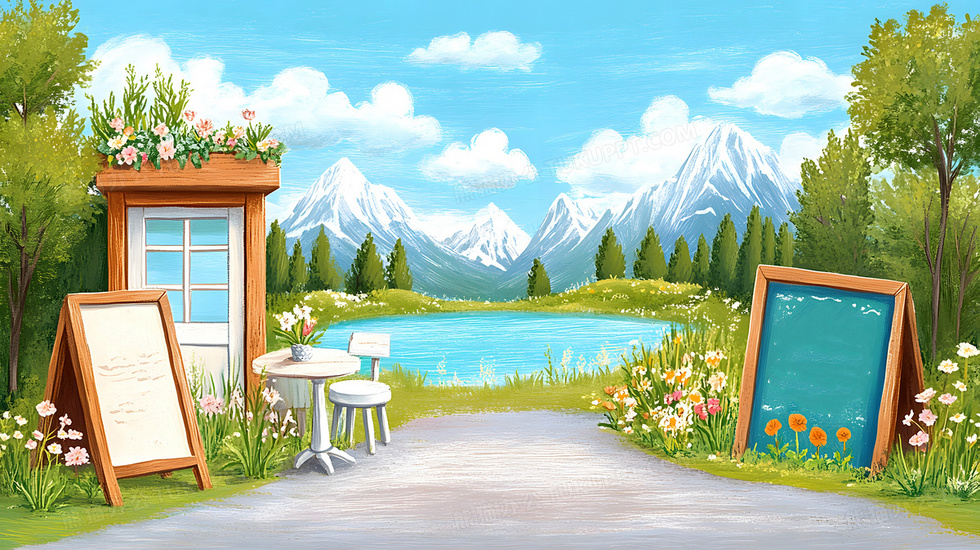 本作品内容为卡通风格春天河流风景湖泊湖湖水插画, 格式为 jpg, 大小4 MB, 图片尺寸为2912 x 1632, 源文件无水印, 欢迎使用熊猫办公。 如认为平台内容涉嫌侵权,可通过邮件:tousu@tukuppt.com提出书面通知,我们将及时处理。