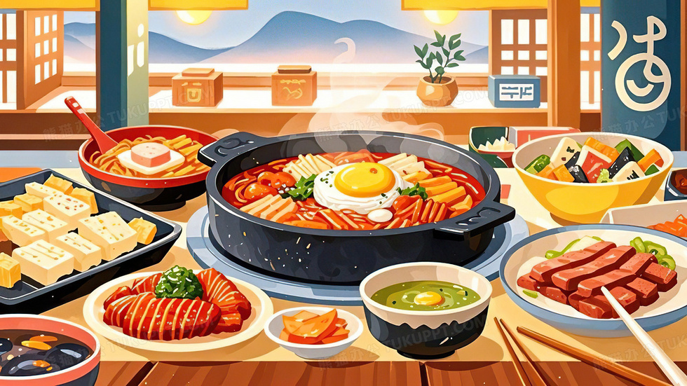 本作品内容为韩国韩式韩国文化部队火锅韩式料理插画, 格式为 jpg, 大小5 MB, 图片尺寸为3072 x 1728, 源文件无水印, 欢迎使用熊猫办公。 如认为平台内容涉嫌侵权,可通过邮件:tousu@tukuppt.com提出书面通知,我们将及时处理。