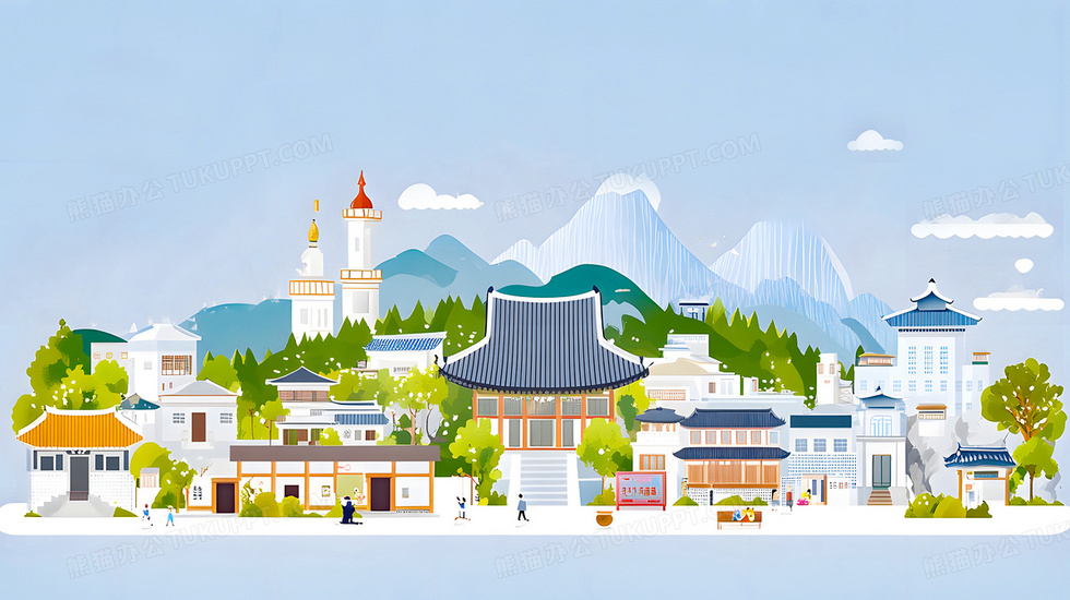 本作品内容为卡通风格韩国文化韩国现代建筑街景插画, 格式为 jpg, 大小3 MB, 图片尺寸为2912 x 1632, 源文件无水印, 欢迎使用熊猫办公。 如认为平台内容涉嫌侵权,可通过邮件:tousu@tukuppt.com提出书面通知,我们将及时处理。