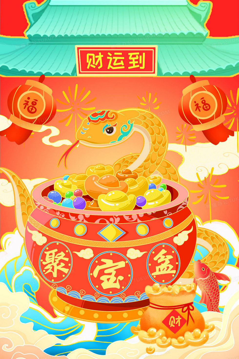 本作品内容为蛇年财运到聚宝盆创意插画, 格式为 psd, 大小44 MB, 请使用软件PhotoShop(CC)打开, 源文件无水印, 欢迎使用熊猫办公。 如认为平台内容涉嫌侵权,可通过邮件:tousu@tukuppt.com提出书面通知,我们将及时处理。