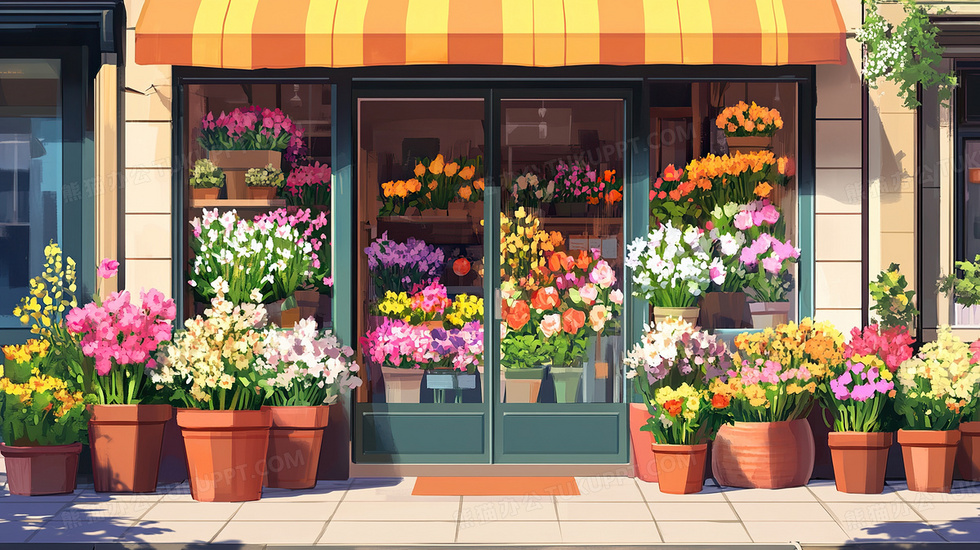 本作品内容为花店门口环境插画, 格式为 jpg, 大小4 MB, 图片尺寸为2912 x 1632, 源文件无水印, 欢迎使用熊猫办公。 如认为平台内容涉嫌侵权,可通过邮件:tousu@tukuppt.com提出书面通知,我们将及时处理。