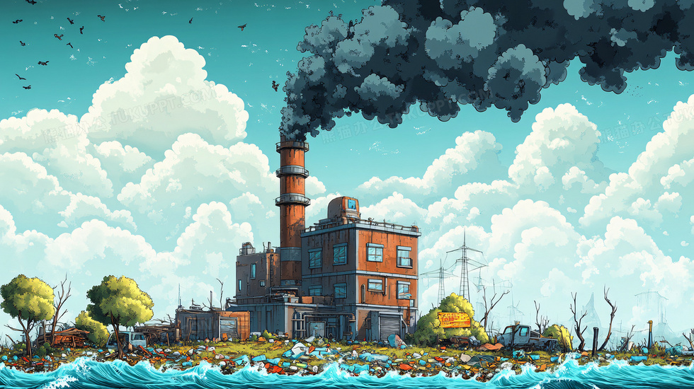 本作品内容为工厂污染环境保护环保插画, 格式为 jpg, 大小6 MB, 图片尺寸为2912 x 1632, 源文件无水印, 欢迎使用熊猫办公。 如认为平台内容涉嫌侵权,可通过邮件:tousu@tukuppt.com提出书面通知,我们将及时处理。