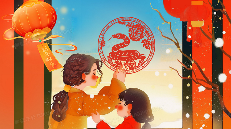本作品内容为女孩和她的妈妈在窗户上贴剪纸插画, 格式为 jpg, 大小6 MB, 图片尺寸为2912 x 1632, 源文件无水印, 欢迎使用熊猫办公。 如认为平台内容涉嫌侵权,可通过邮件:tousu@tukuppt.com提出书面通知,我们将及时处理。