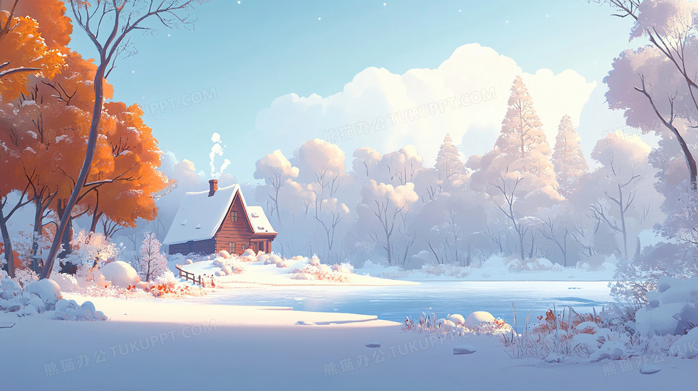 本作品内容为冬天雪地小屋四季风景风光插画, 格式为 jpg, 大小3 MB, 图片尺寸为2912 x 1632, 源文件无水印, 欢迎使用熊猫办公。 如认为平台内容涉嫌侵权,可通过邮件:tousu@tukuppt.com提出书面通知,我们将及时处理。