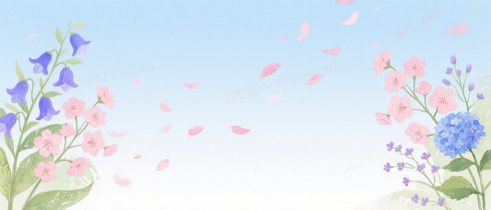 本作品内容为浅天蓝水彩春季花卉背景, 格式为 jpg, 大小1 MB, 图片尺寸为2016 x 864, 作品中背景图片无需修改, 源文件无水印,可以直接使用, 欢迎使用熊猫办公。 如认为平台内容涉嫌侵权,可通过邮件:tousu@tukuppt.com提出书面通知,我们将及时处理。