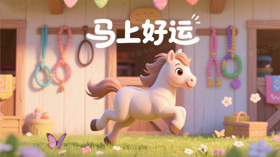本作品内容为马年新年创意壁纸马上好运卡通马插画, 格式为 jpg, 大小5 MB, 图片尺寸为3328 x 1872, 源文件无水印, 欢迎使用熊猫办公。 如认为平台内容涉嫌侵权,可通过邮件:tousu@tukuppt.com提出书面通知,我们将及时处理。