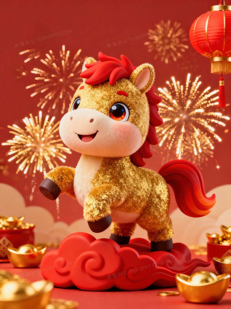 本作品内容为可爱3d小马新年喜庆插画, 格式为 jpg, 大小14 MB, 图片尺寸为3456 x 4608, 源文件无水印, 欢迎使用熊猫办公。 如认为平台内容涉嫌侵权,可通过邮件:tousu@tukuppt.com提出书面通知,我们将及时处理。