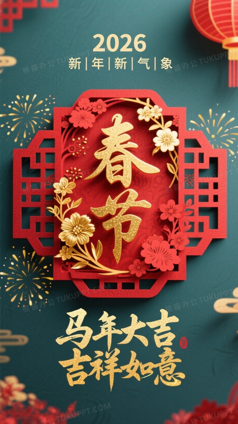 本作品内容为红色为背景的2026马年除夕主题海报, 格式为 jpg, 大小1 MB, 图片尺寸为936 x 1664, 源文件无水印, 欢迎使用熊猫办公。 如认为平台内容涉嫌侵权,可通过邮件:tousu@tukuppt.com提出书面通知,我们将及时处理。