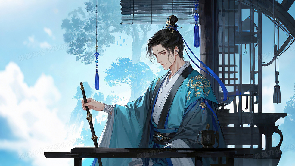 本作品内容为坐在室内窗边的古代美男子插画, 格式为 jpg, 大小4 MB, 图片尺寸为3640 x 2048, 源文件无水印, 欢迎使用熊猫办公。 如认为平台内容涉嫌侵权,可通过邮件:tousu@tukuppt.com提出书面通知,我们将及时处理。