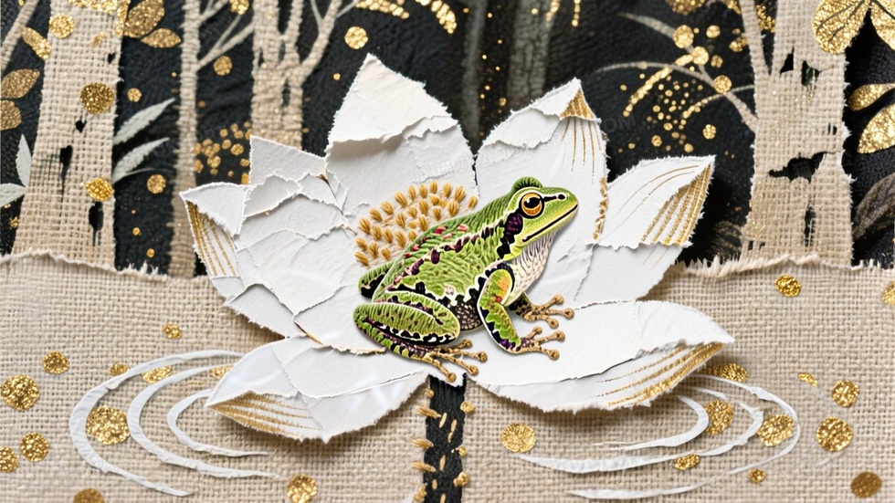 本作品内容为肌理拼贴艺术风格撕纸纹理青蛙栖息在拓印荷花上, 格式为 jpg, 大小1 MB, 图片尺寸为1664 x 936, 源文件无水印, 欢迎使用熊猫办公。 如认为平台内容涉嫌侵权,可通过邮件:tousu@tukuppt.com提出书面通知,我们将及时处理。