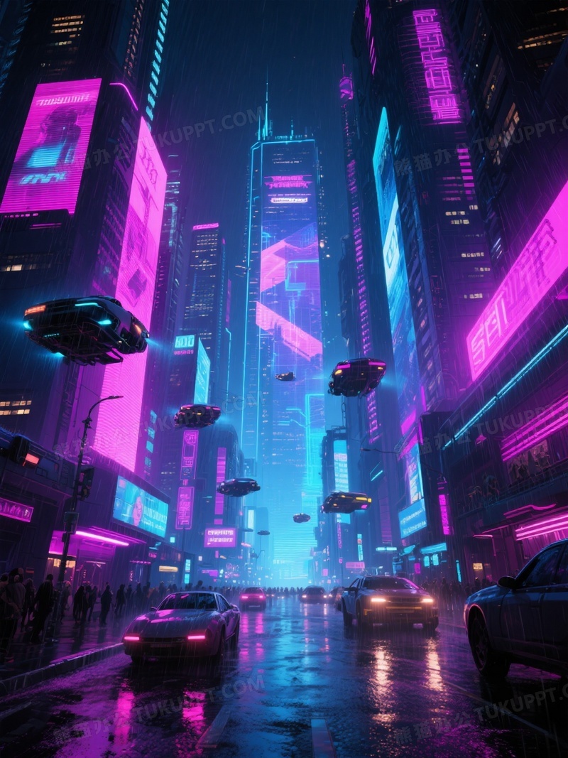 本作品内容为未来赛博朋克城市夜景, 格式为 jpg, 大小1 MB, 图片尺寸为1104 x 1472, 源文件无水印, 欢迎使用熊猫办公。 如认为平台内容涉嫌侵权,可通过邮件:tousu@tukuppt.com提出书面通知,我们将及时处理。