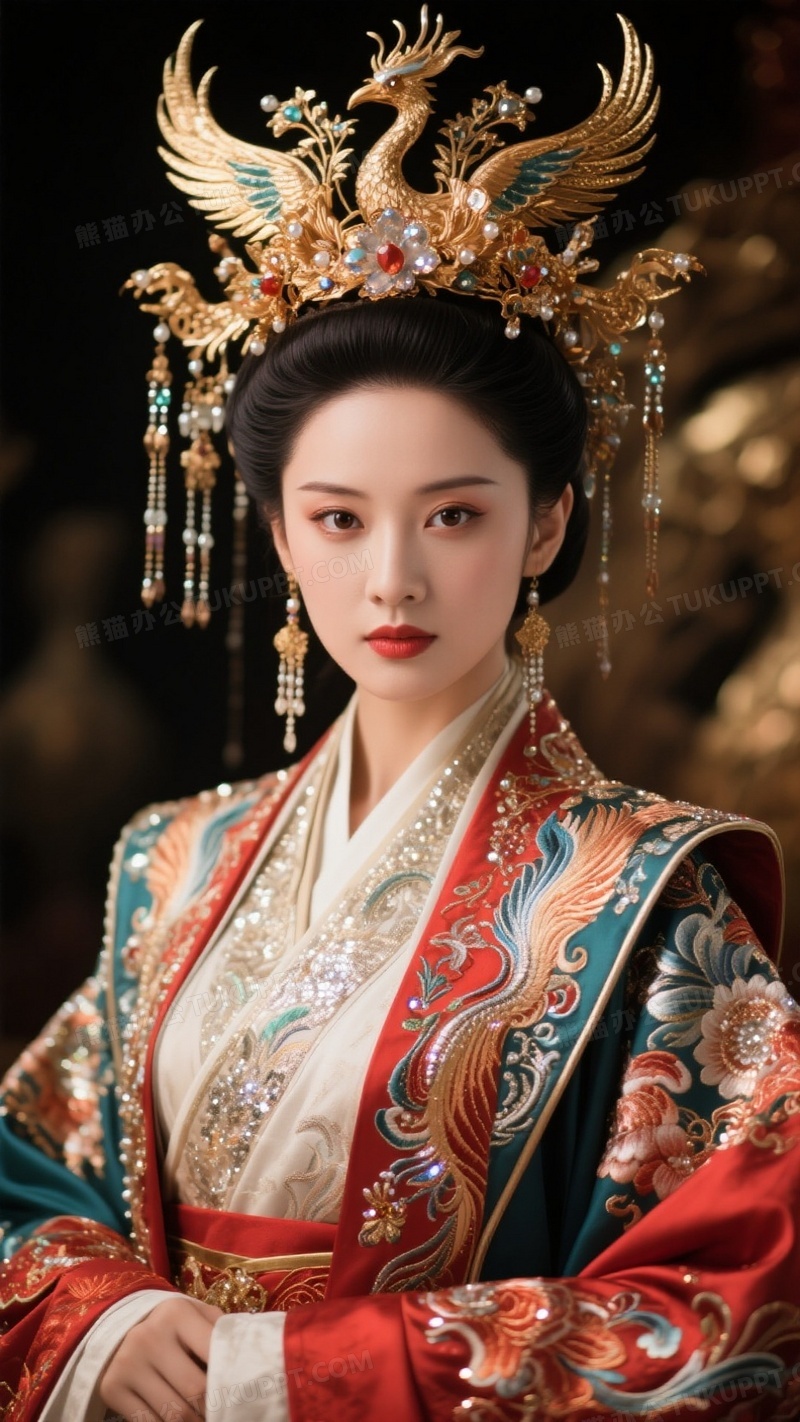 本作品内容为古装汉服女子霸气身穿凤冠霞帔, 格式为 jpg, 大小1 MB, 图片尺寸为936 x 1664, 源文件无水印, 欢迎使用熊猫办公。 如认为平台内容涉嫌侵权,可通过邮件:tousu@tukuppt.com提出书面通知,我们将及时处理。